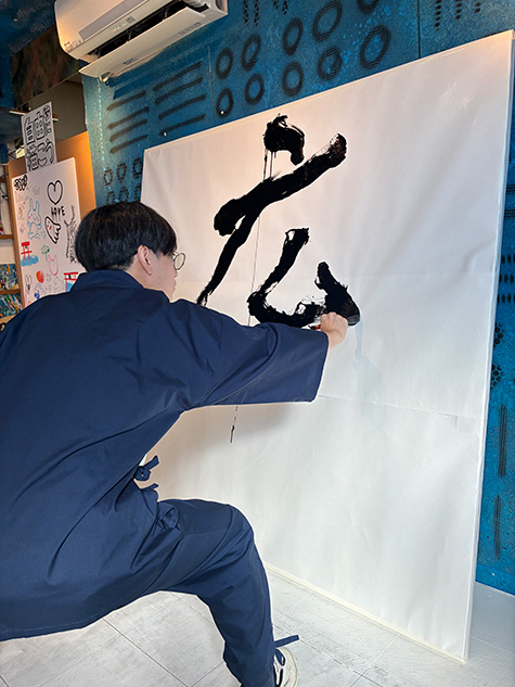 イベントや式典のテーマ・主催者の想いに合わせた言葉を、その場で力強く揮毫し、会場に高揚感と一体感を生み出します。