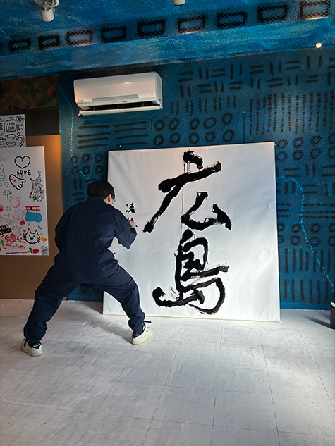 迫力ある大筆揮毫と音楽を融合させたライブ書道パフォーマンスを行っています。